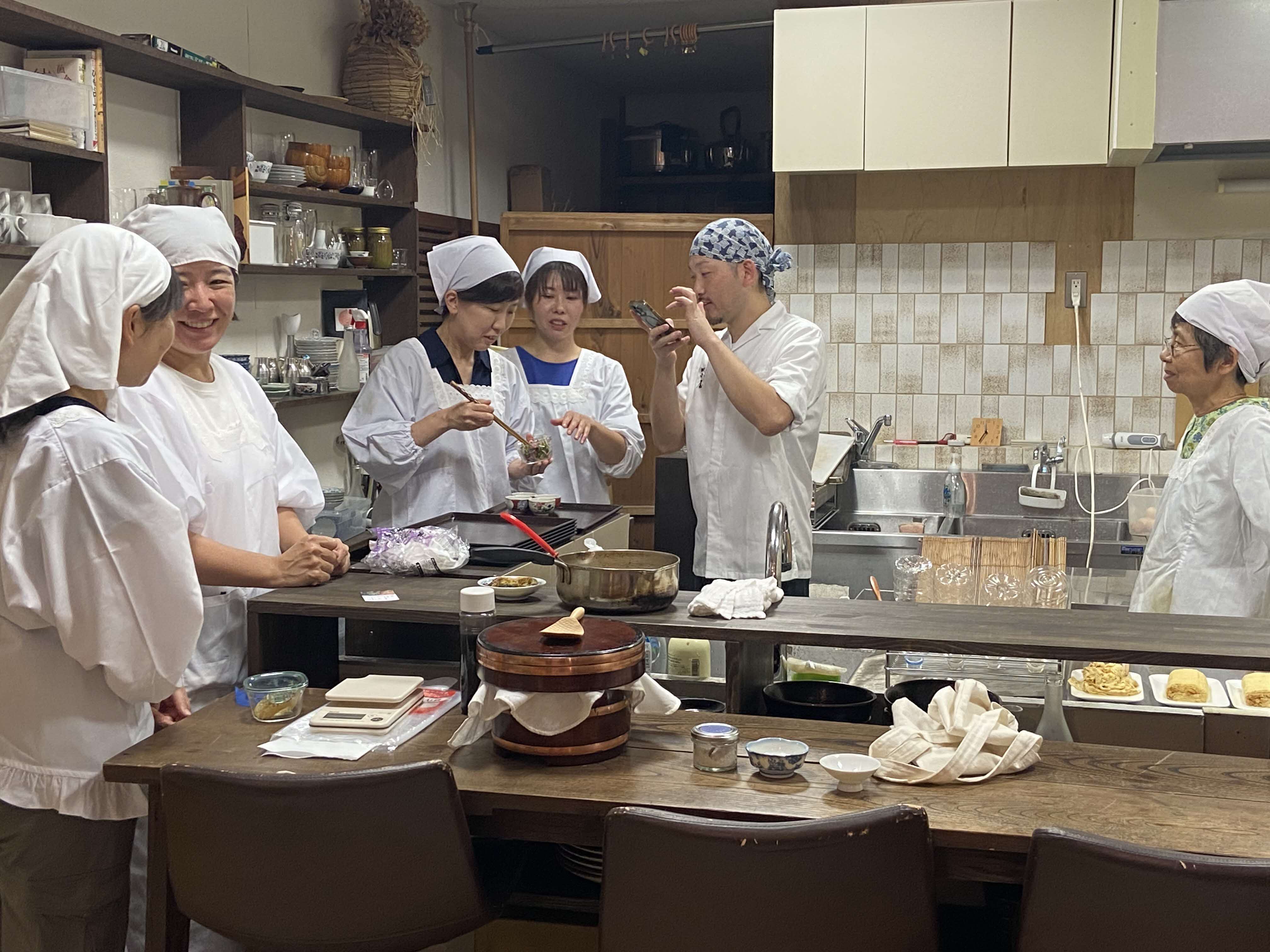 メンバーは、旭日酒造の寺田栄里子さん、けんちゃん漬けの成相由紀子さん、渡邊水産の岩田響子さんと渡邊美和子さん、そば処田中屋の田中俊樹さん、そしてむすびやの渡部裕子さん。出雲の“おいしい”を支える、心強い仲間たちです。